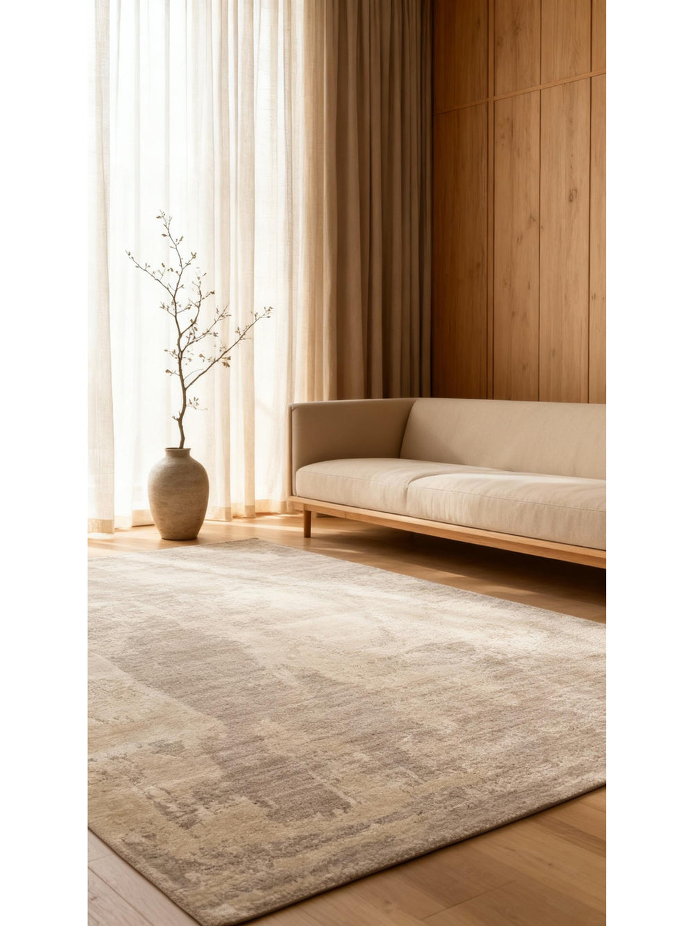 Palette Series 100% Natural Wool Viscose Cotton Handwoven Scandinavian Living Room Carpet BEIGE